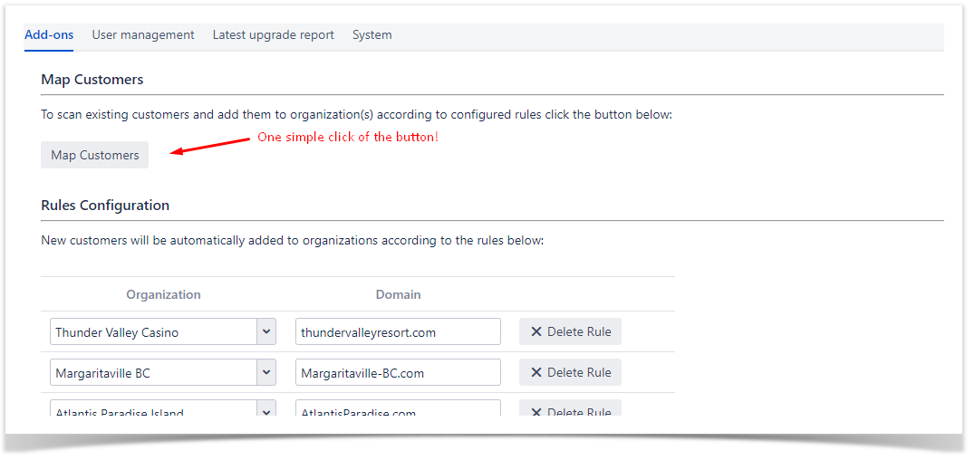 Now when a user raises a ticket in JIRA Service Desk that user will be automatically mapped to the appropriate organization. Good News! Next release scheduled for 3/1/2020, automation of organization creation will be included, meaning you will not need to even add the organization, if user raises a ticket in JIRA Service Desk and that Organization doesn't exist in the ticket, it will be automatically added for you! Stay tuned.