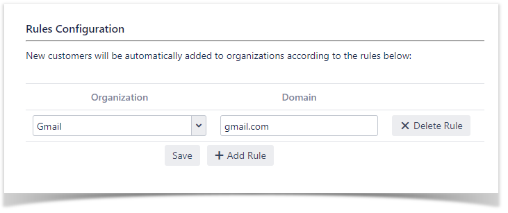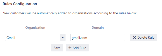 Click '+Add Rule' to create a new rule and fill in the Project, Organization, and Domain areas.